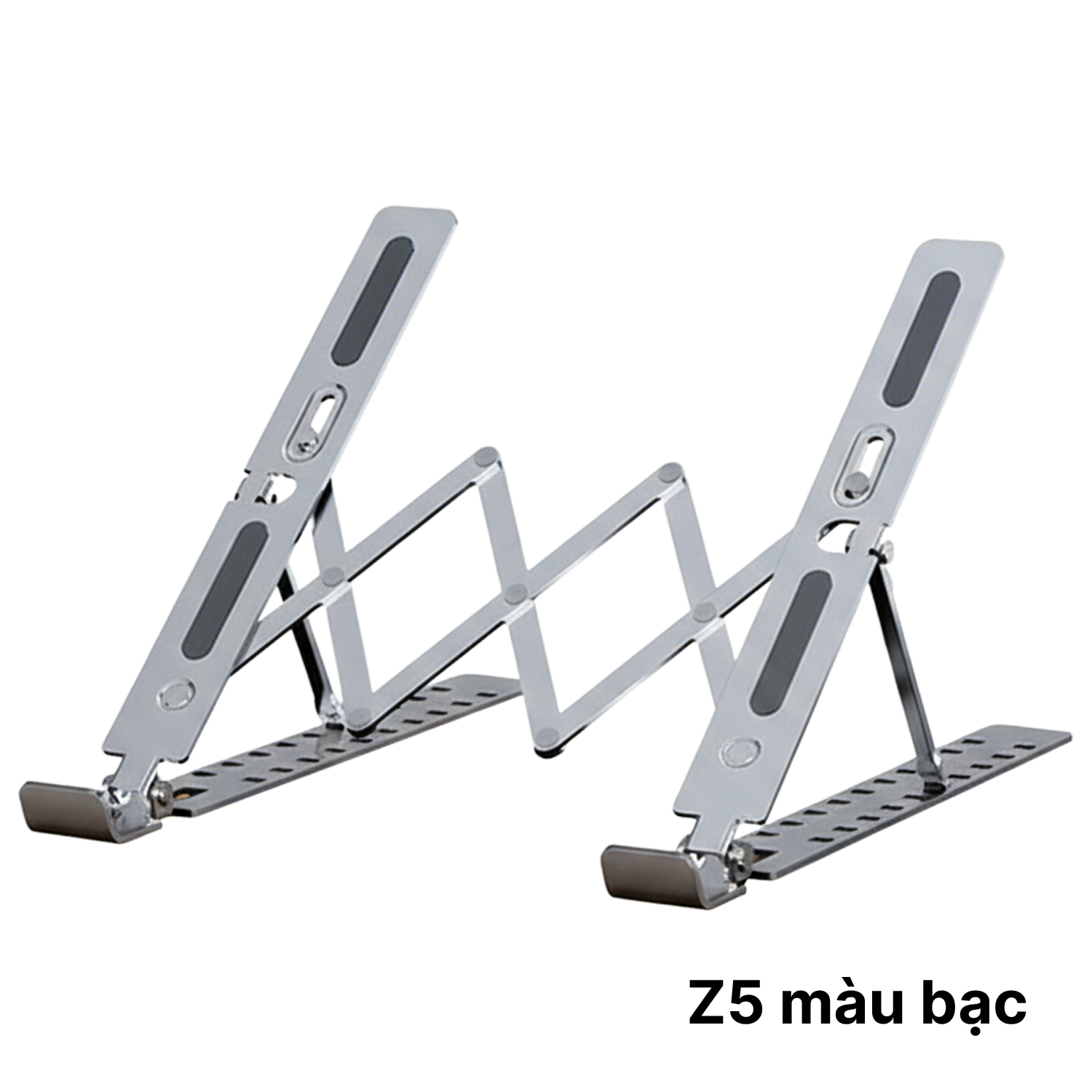 Giá đỡ laptop Z5 BẠC – Nhôm gấp gọn, 10 cấp độ điều chỉnh, cho máy tính 11-17inch