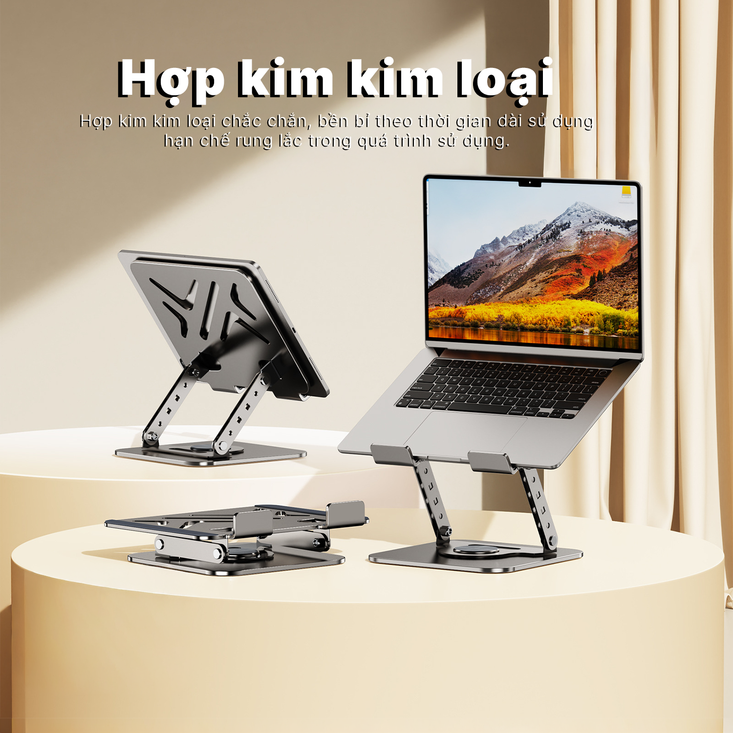 Giá đỡ xoay laptop SG19 Xám – Kim loại, xoay 360° phù hợp cho laptop 11-17 inch