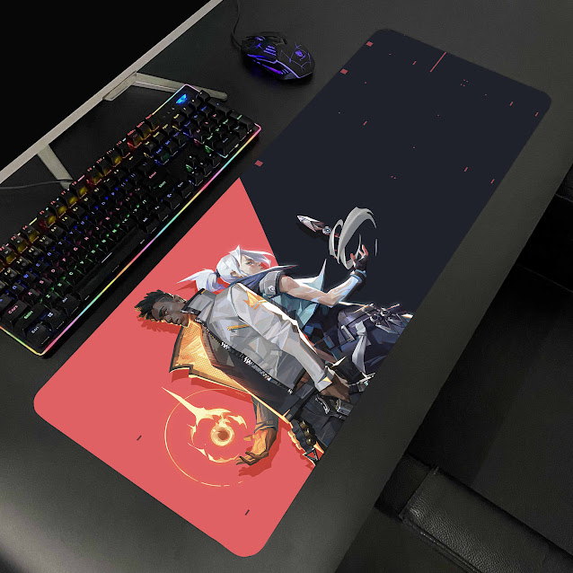 Thiết kế hình in Valorant 2 nhân vật nền đỏ đen giúp sản phẩm tạo điểm nhấn rõ ràng cho góc bàn, đồng thời giữ màu sắc nổi bật sau thời gian sử dụng nếu được vệ sinh đúng cách.