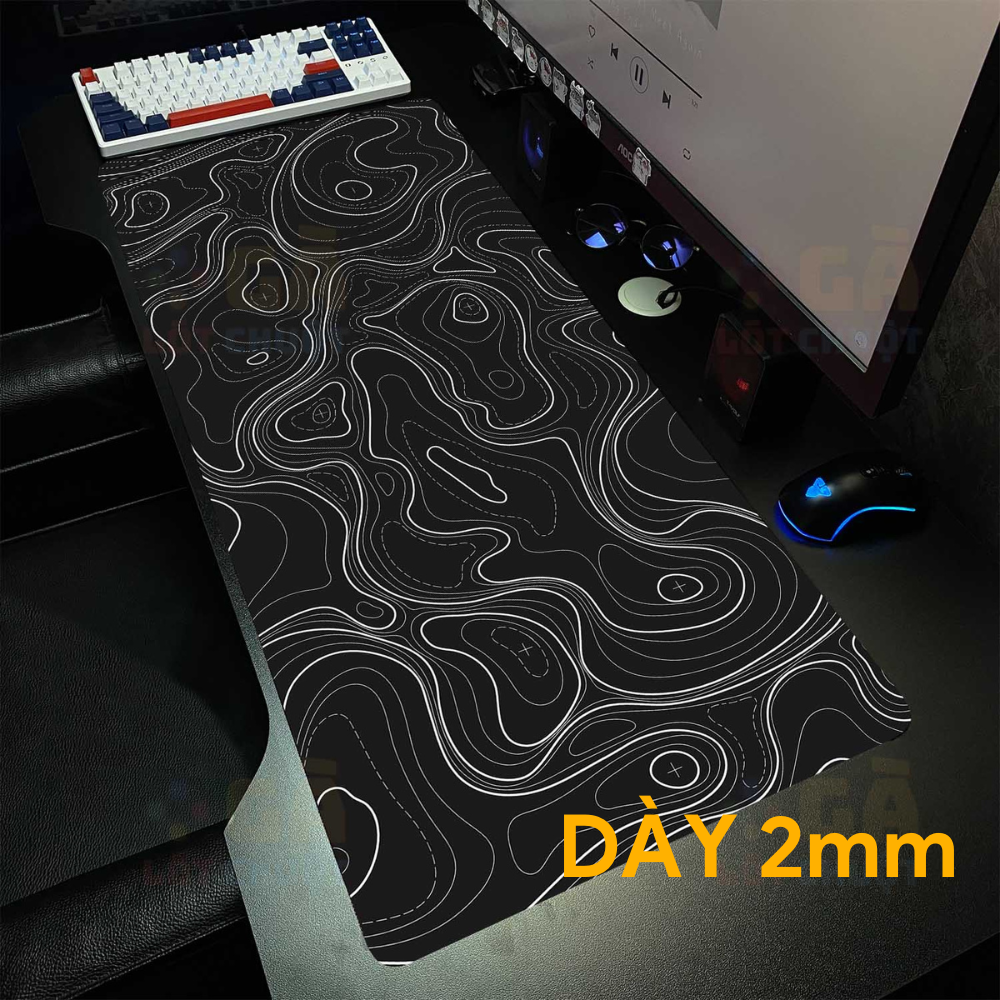 Lót chuột cỡ lớn 90×40 Chỉ trắng nền đen Dày 2mm
