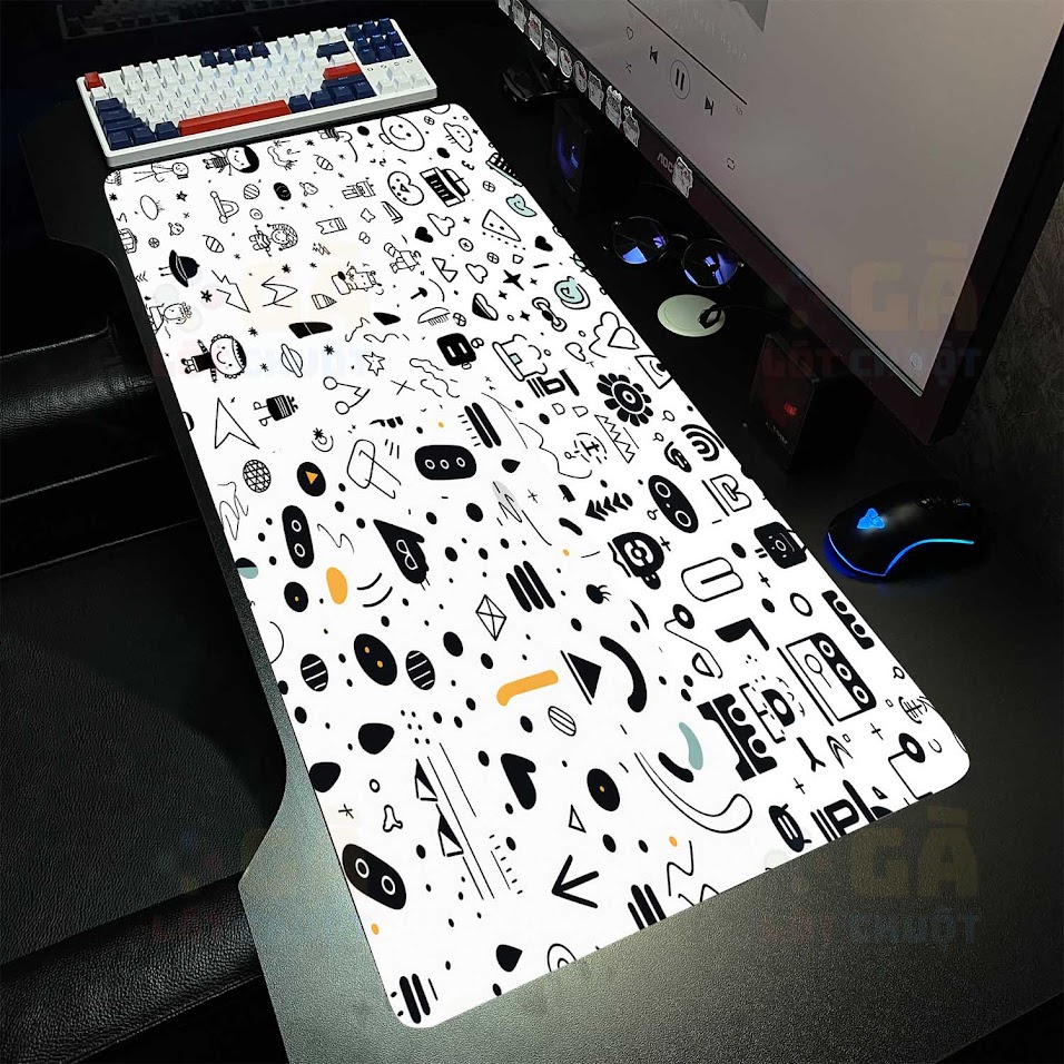 Lót chuột cỡ lớn 90×40 Icon linh tinh NỀN TRẮNG