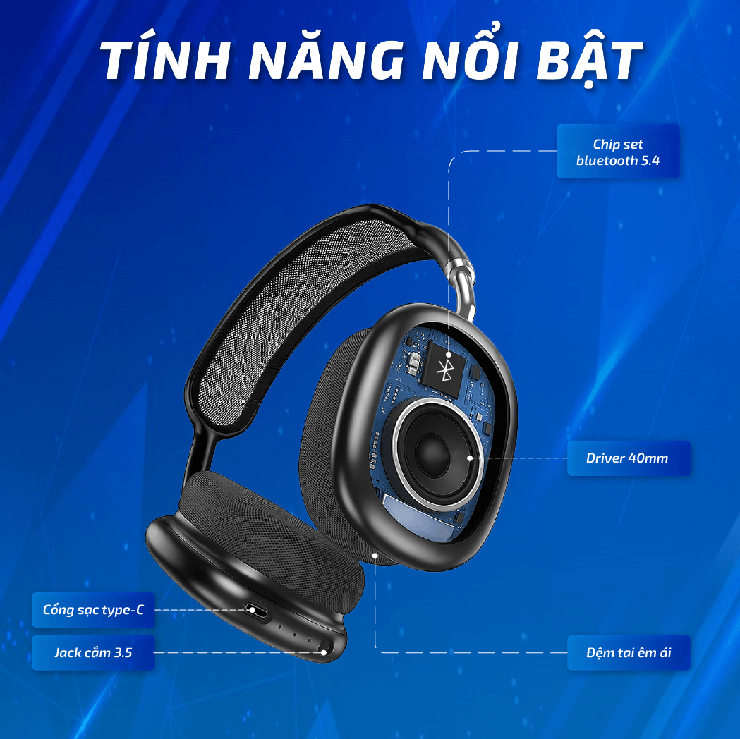 Âm thanh cân bằng (bass chắc, mid/treble rõ). Đệm tai mềm êm lâu, gọng bền kéo dãn và xoay gọn. Bluetooth 5.3 - 5.3 (tuỳ phiên bản) ổn định, tự kết nối. Pin tới 90 giờ (tùy phiên bản). Sạc Type-C hỗ trợ sạc nhanh.